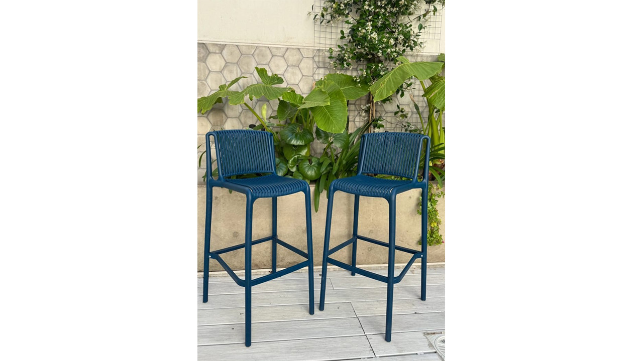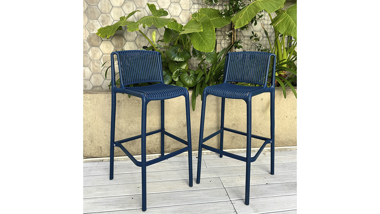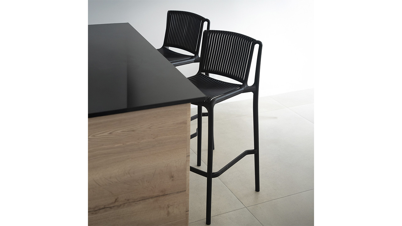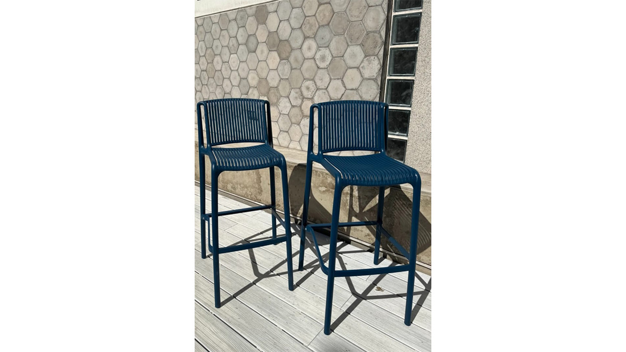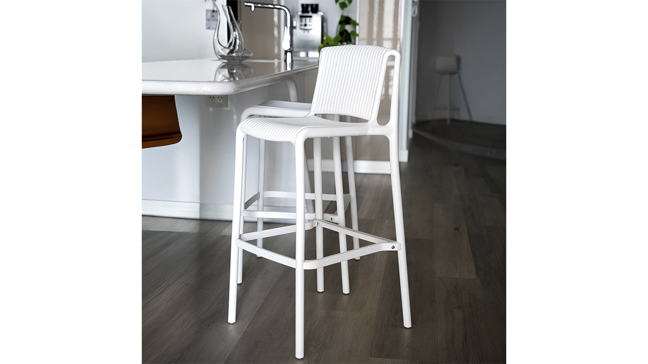 La banqueta Tokio, con un llamativo diseño de listones verticales en el asiento y respaldo, está fabricada con polipropileno reforzado con fibra de vidrio de alta durabilidad.
