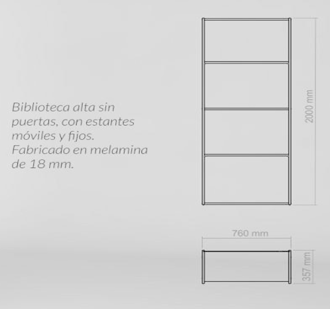| Modelo: | Biblioteca sin Puertas – Línea Blanca ó Clásica |