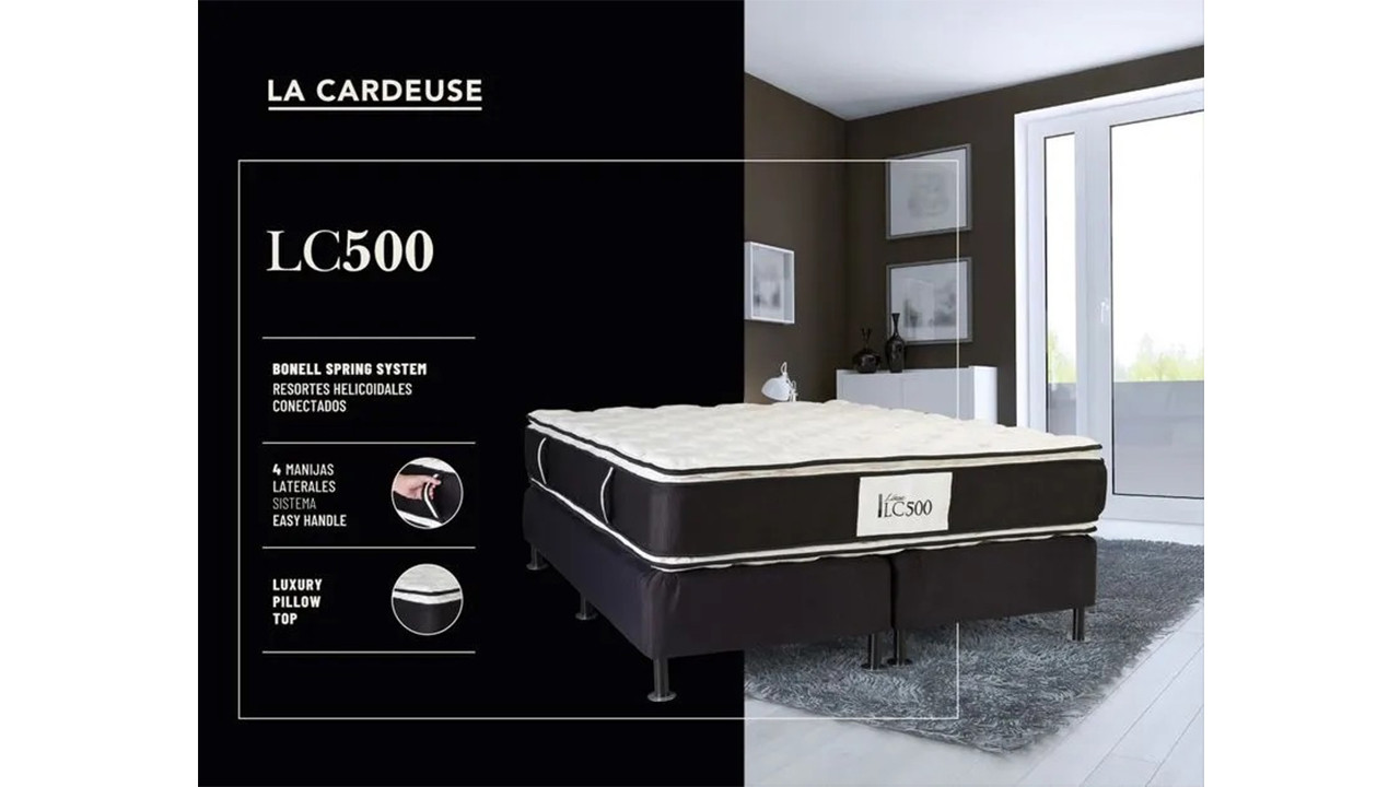 El LC 500 permite disfrutar del descanso de los hoteles de más alta categoría. Cuenta con todos los beneficios de los resortes Bicónicos e incorpora el Luxury Pillow Top logrando así frescura, confort y suavidad. A su vez, se complementa con telas de primer nivel, colores, materiales y diseño de vanguardia. Al primer contacto se encuentra una sensación envolvente y una mullidez relajante sin igual, para luego sentir la contención y soporte necesarios para un descanso premium.
