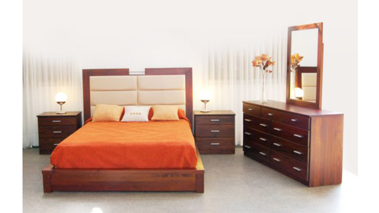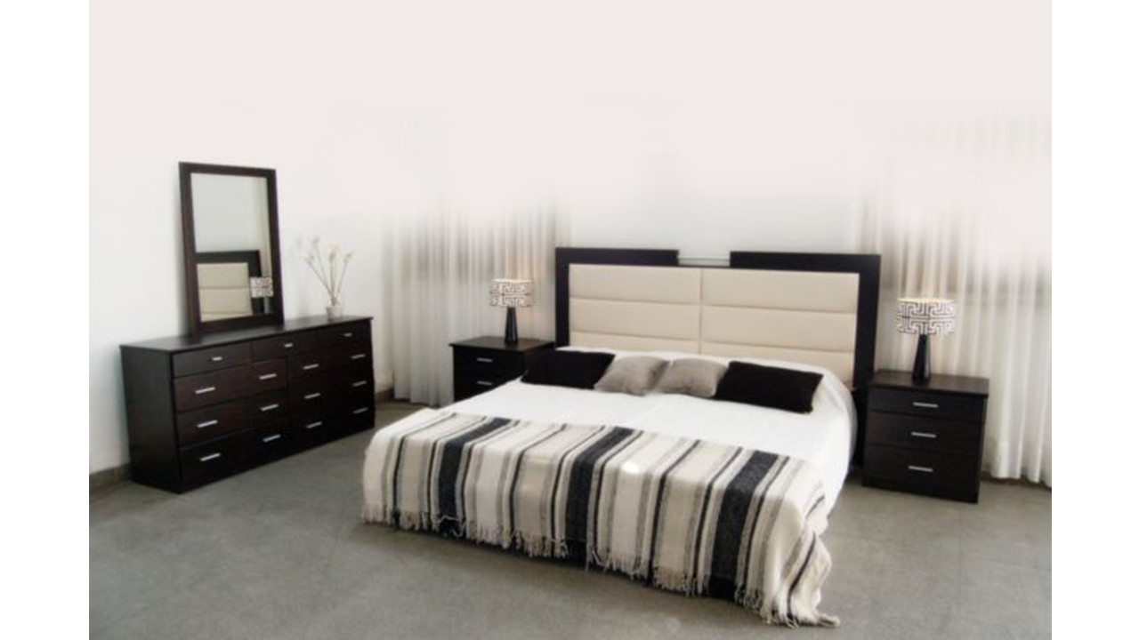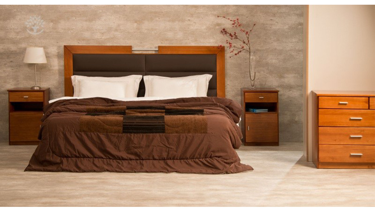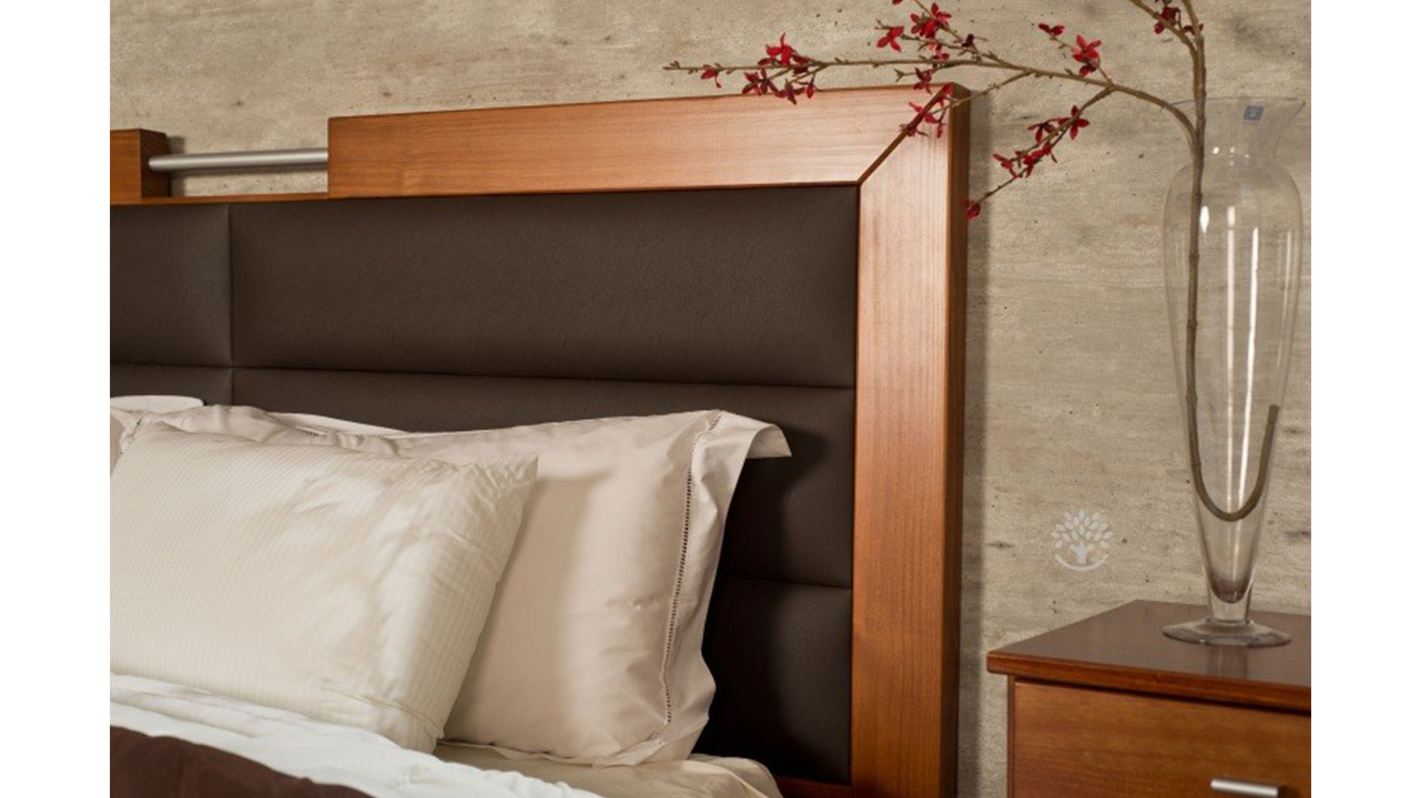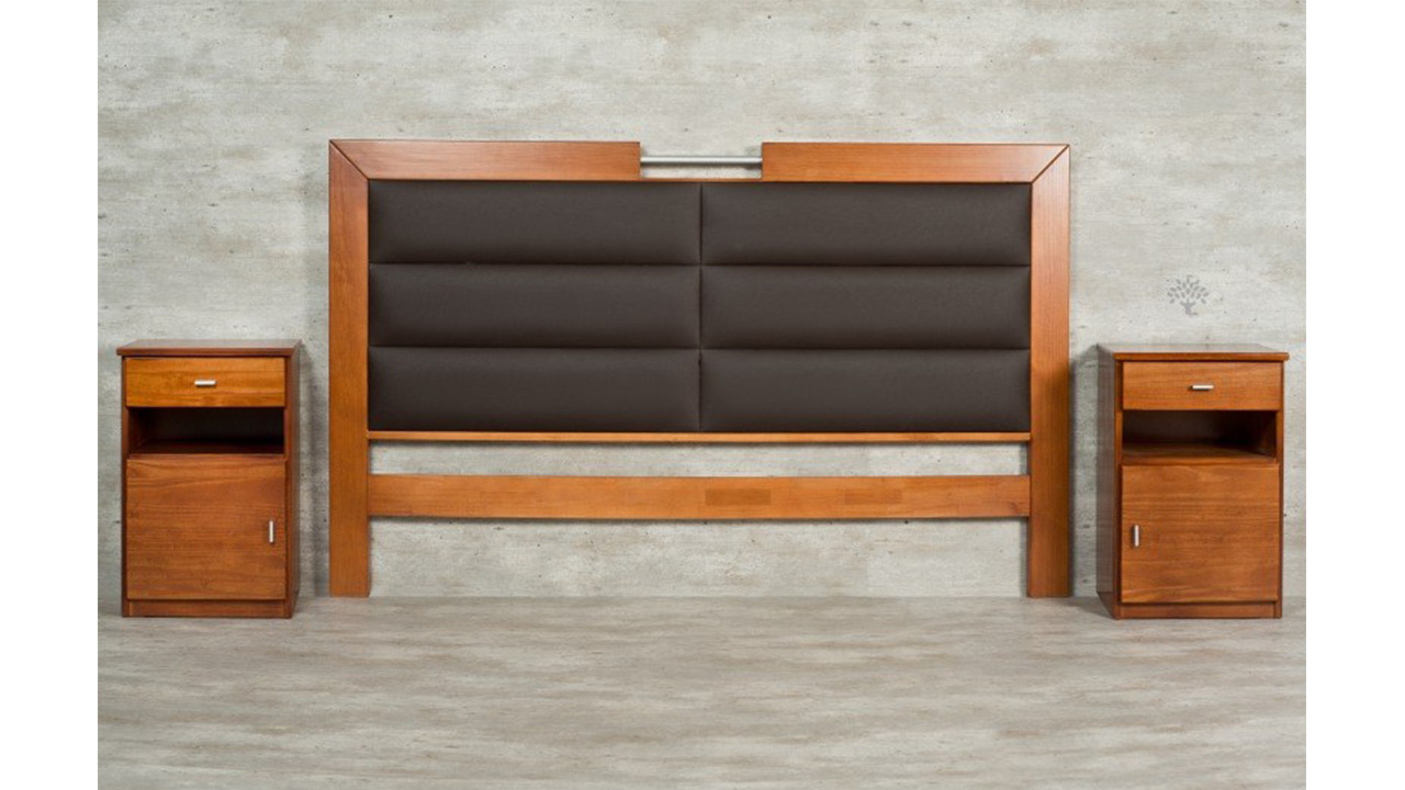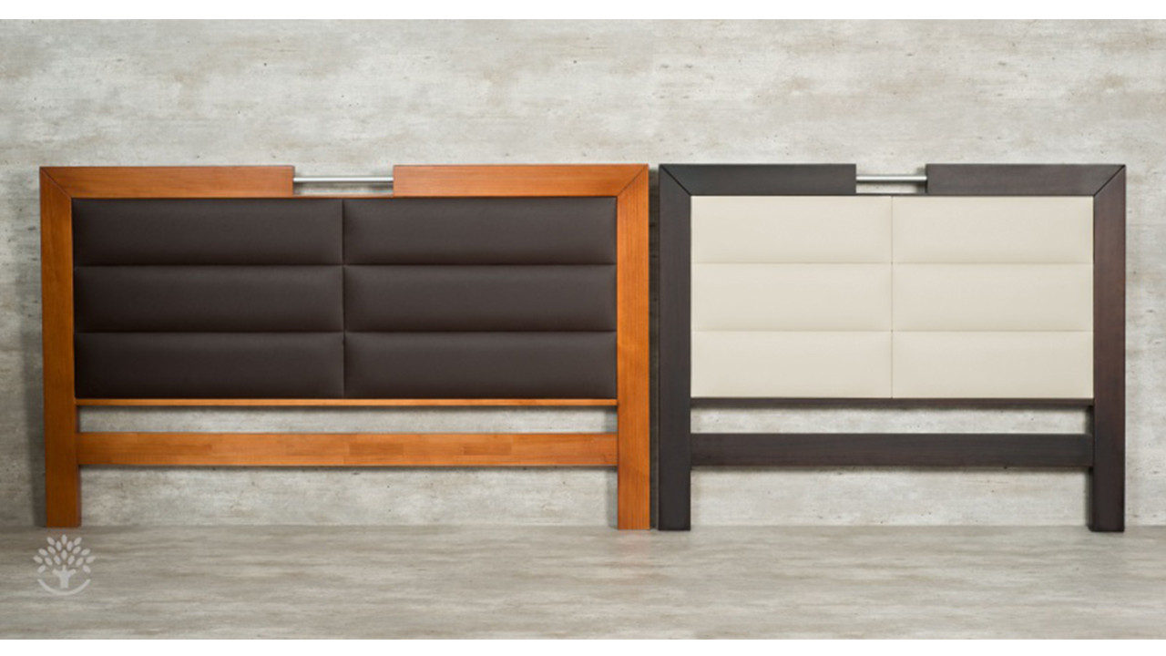 Éste respaldo ofrece una sofisticada combinación de madera maciza lustrada, telas de primera calidad y metal.