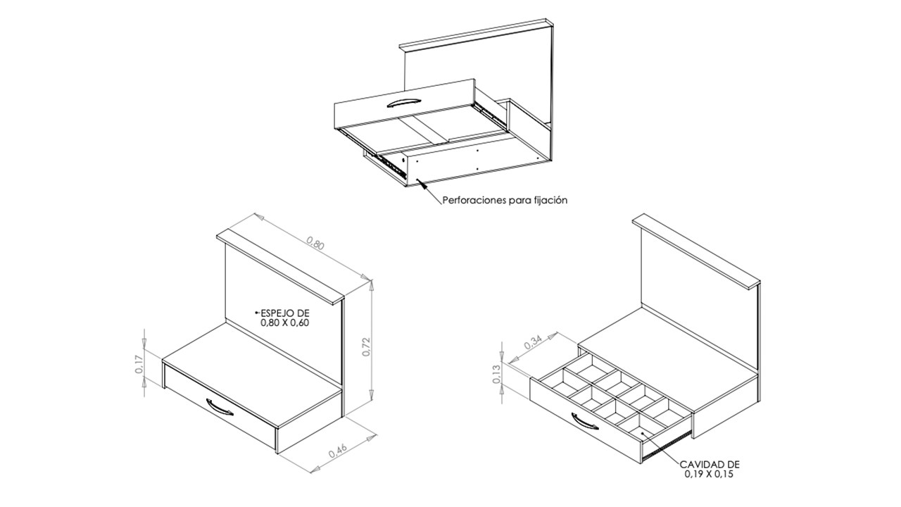 Mesa Flotante con Cajón y Espejo.